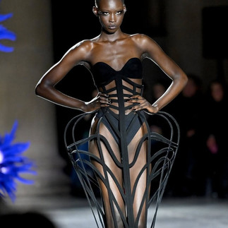 Nothing about Harris Reed is subtle—and this collection was no exception. The carefully sourced fabrics were reimagined into sculptural pieces that challenge proportions and evoke the glamour of an era where more was always more. Structured skirts with exaggerated hip volumes, shoulders and collars that extend past the head, and plunging backlines that flirt with surrealism create a visual impact that defies convention. While some may argue that these pieces are impractical for everyday wear, that is not the designer's concern. "The more theatrical, the more people buy the pieces—and I know that's not the reality for other designers," Reed stated, reaffirming his belief that fashion should be an experience, not just clothing.